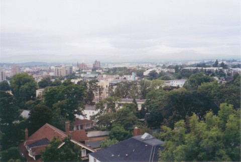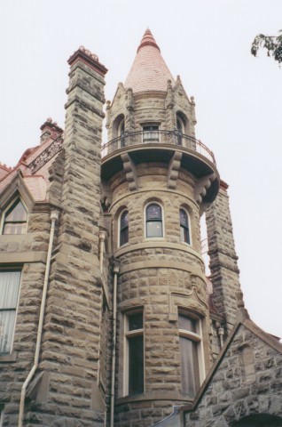 We spent our last half day in Victoria at Craigdarroch Castle. This mansion, whose story starts with coal magnate Robert Dunsmuir, is still undergoing renovations, but is a great place to visit even only partially complete. While you're there, you can see this view of the castle from what's left of the grounds, look up at the tower, view both family rooms and bedrooms, and take in the view of Victoria from the tower.