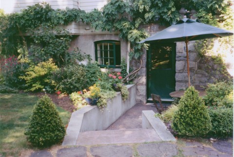 Later, we took the ferry over to Vancouver Island, then drove down to Victoria, site of mile 0 on the Trans-Canada highway. In Victoria, we stayed in the Prior House, another excellent B&B. This photo shows the entrance to our garden room there, the Hobbit room.
