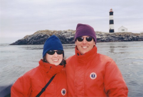 The next day took us whale-watching with Eagle Wing tours. Alas, we did not spot any of Shamu's relatives, but we did see bald eagles, watched seals playing on Race Rock, and got to wear these stylin' duds. This is our tour boat and guide Harold, eh?